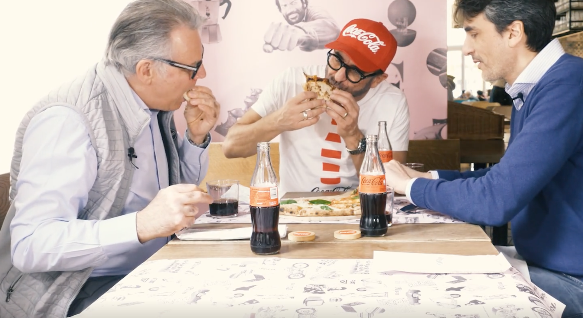 Heute sind wir mit Coca-Cola in der Pizzeria Riva Favorita im 4. Bezirk zu Gast. Am Eingang erwartet mich schon der Besitzer Alessandro d’Ambrosio und führt mich nach einer herzlichen Begrüßung zu meinem Tisch. „Lieber Mauro“, sagt Herr d’Ambrosio zu mir, „ich habe eine Überraschung für dich. Schau mal, wen ich eingeladen habe!“ Mit Erstaunen sehe ich Fabio Cella, den Direktor von Coca-Cola Österreich, der bereits auf mich wartet.